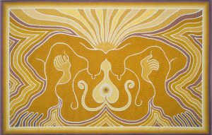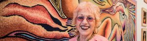 Für das «Birth Project» (1980-85) richtete Chicago ihr Augenmerk auf den, was sie als einen toten Winkel in der Kunstgeschichte sah: Die Darstellung der Geburt. In Zusammenarbeit mit 150 auf die Vereinigten Staaten verteilten freiwilligen Näharbeiterinnen produzierte sie total 85 Stickerei- und Textilarbeiten. Diese zeigen schwangere oder gebärende Frauen, gefangen zwischen Freude und quälenden Schmerzen. Das Geburtsprojekt wird derzeit in «Judy Chicago: A Reckoning» gezeigt, Chicagos Retrospektive im Institute of Contemporary Art Miami. In diesem Exklusivinterview (5′:50″) greift sie eine Arbeit auf, die drei Jahrzehnte später nichts von ihrer Dringlichkeit verloren hat.